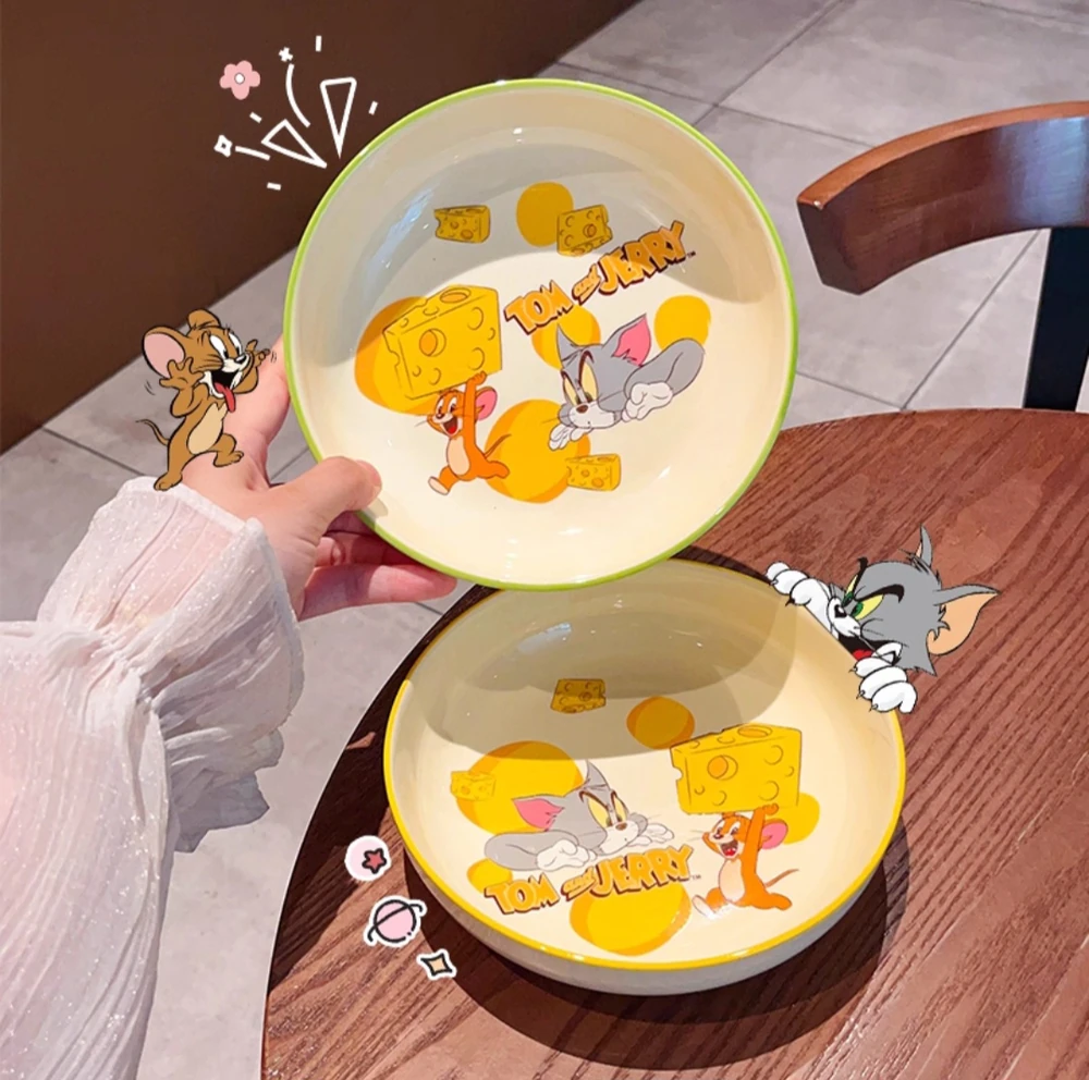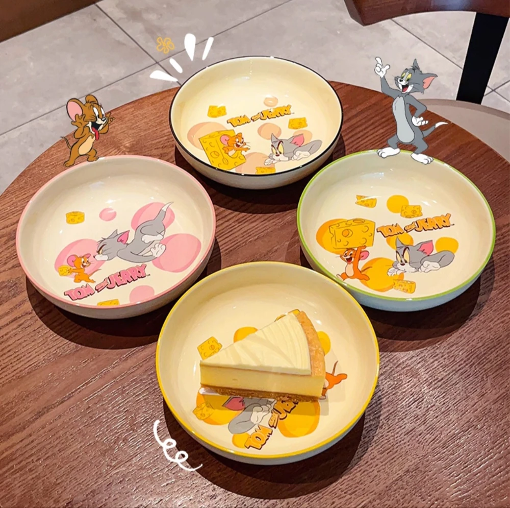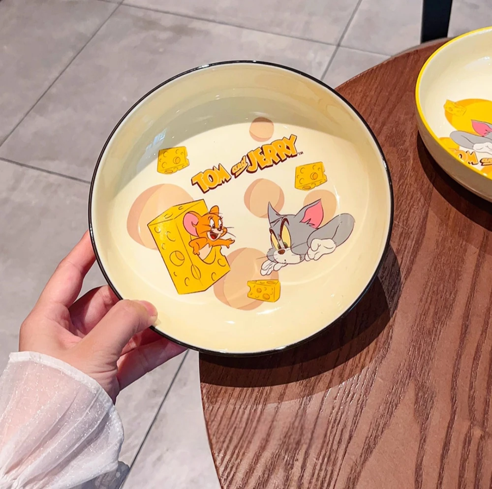 PLATO CERAMICA 7" GATO Y RATON BORDE NEGRO, CON CAJA DE RAGALO