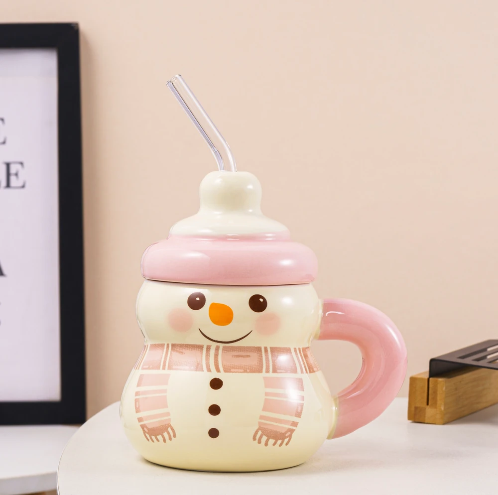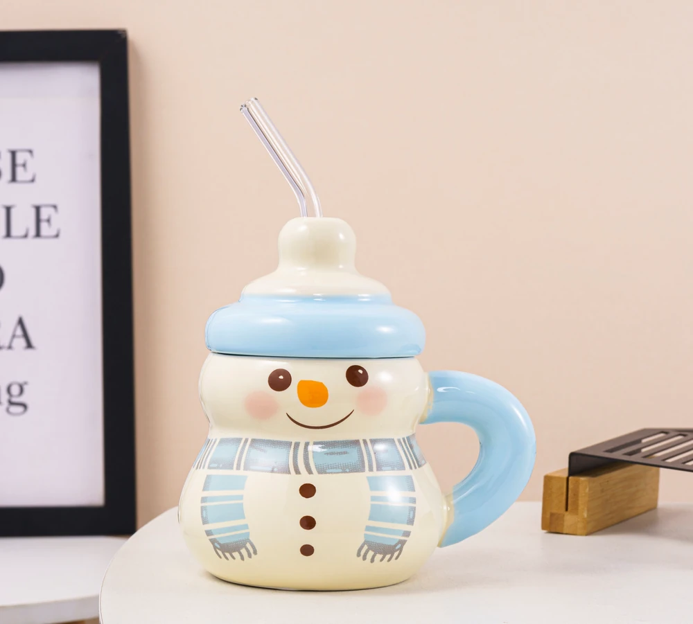 TAZA CERAMICA FORMA MUÑECO DE NIEVE