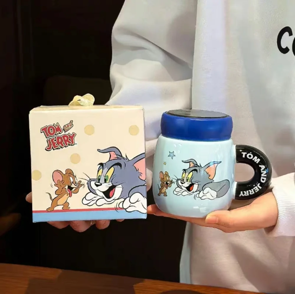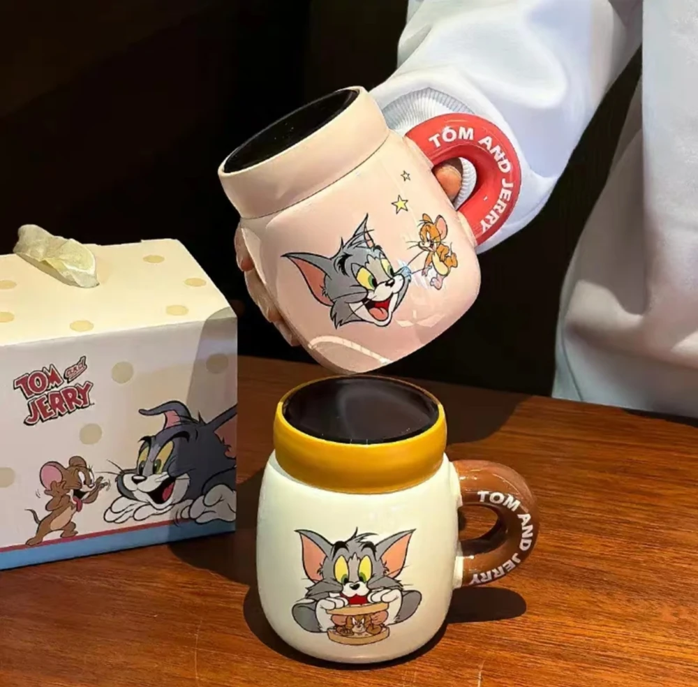 TAZA CERAMICA TAPA ESPEJO GATO Y RATON