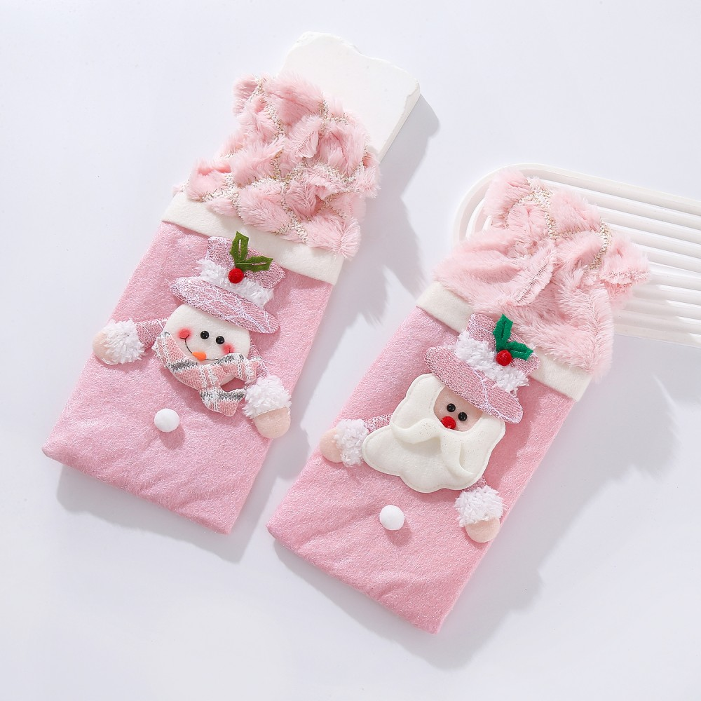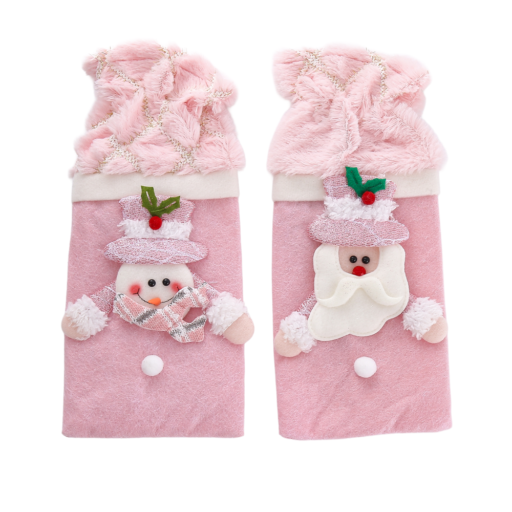 Funda Botella Navidad Bordada Rosa Peluche