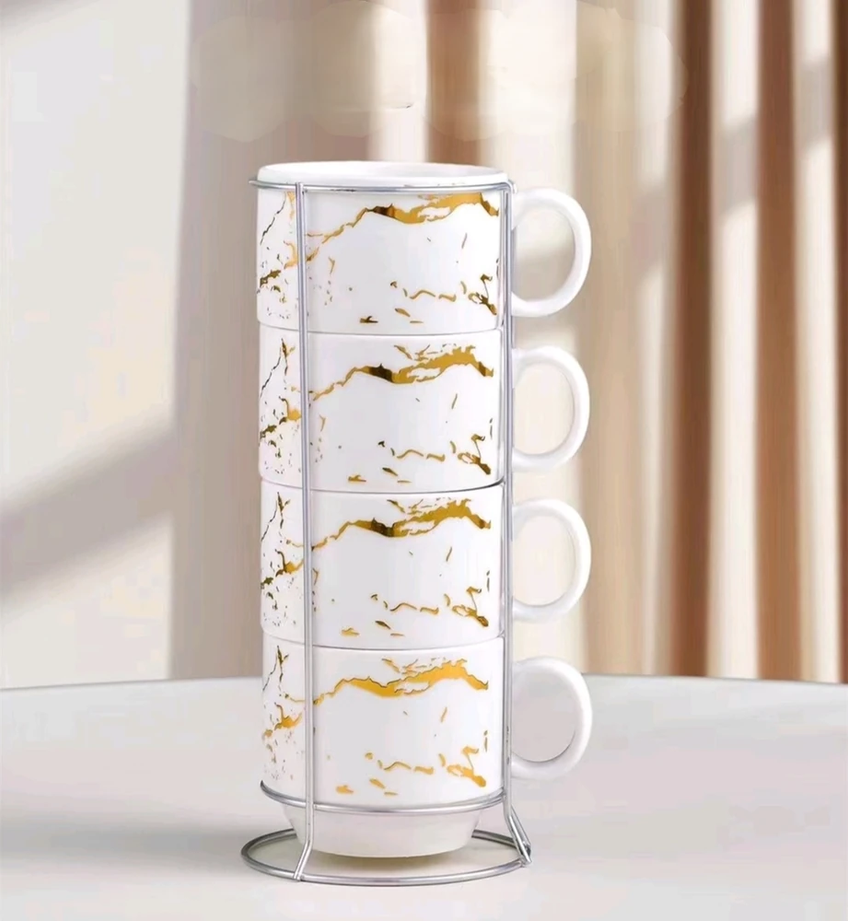 TAZA TE CERAMICA X 4 DISEÑO MARMOL DORADO GRANDE