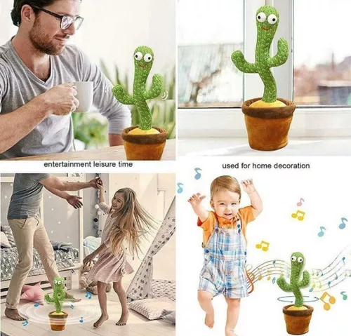 CARACTERÍSTICAS: -El juguete de cactus puede bailar, cantar, mover, girar y llevar al niño un momento feliz -Diferentes canciones (puede haber varias canciones de otros países al azar) + iluminación + grabación + baile + repetir la voz de uno -El baile juguete de cactus puede atraer la atención de los niños y es bueno para la educación temprana y para aprender a hablar -El muñeco de cactus no solo es un juguete educativo, sino que también se puede utilizar para decorar tu hogar y hacer que tu hogar sea más atractivo. -Regalo perfecto para niños como regalo de festival de cumpleaños o navidad Hecho de material de tela, respetuoso con el medio ambiente y duradero. Altura: aproximadamente 32cm Batería: Requiere 3 baterias doble A (No incluidas)