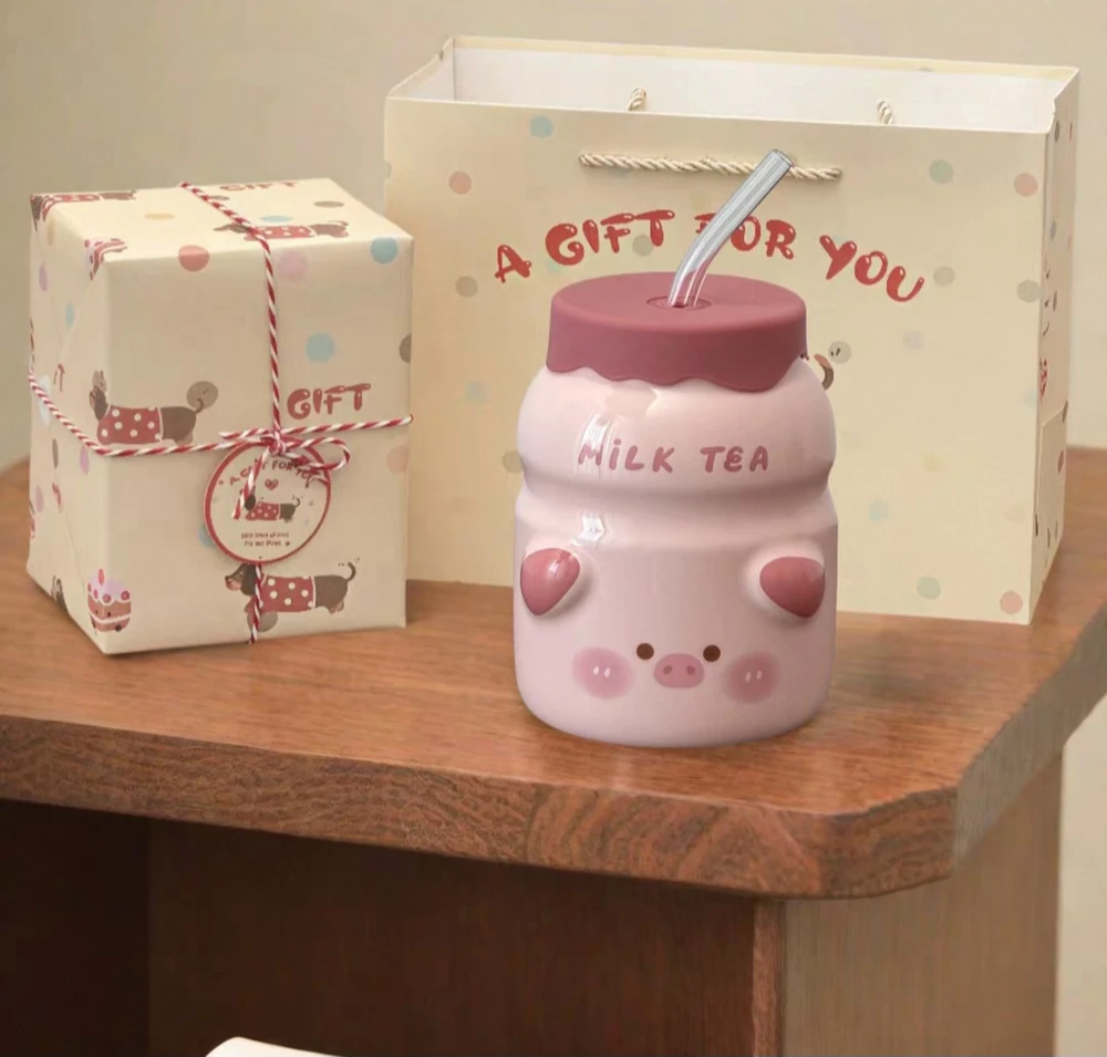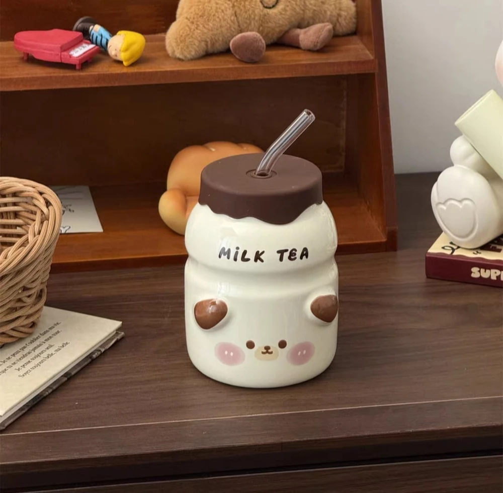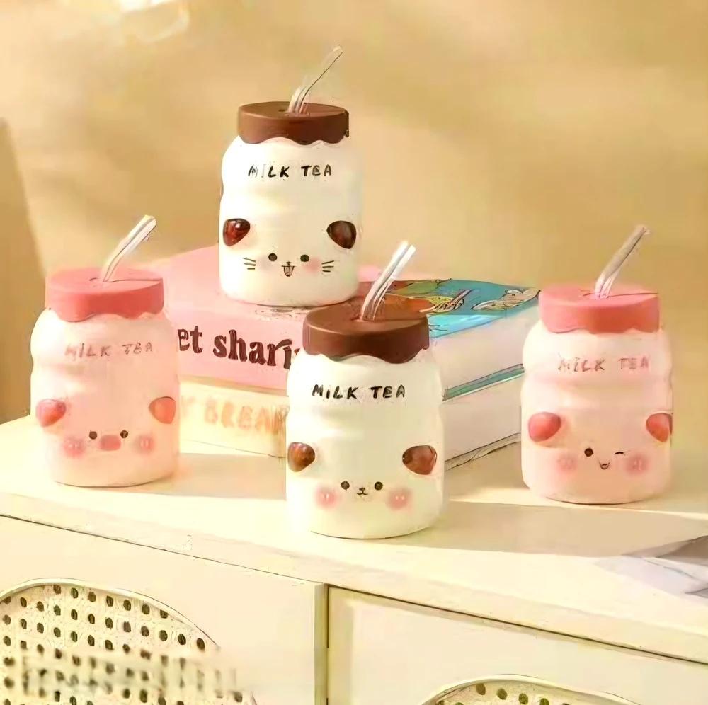 TAZA CERAMICA CUTE ANIMAL CON SORBETE DE VIDRIO