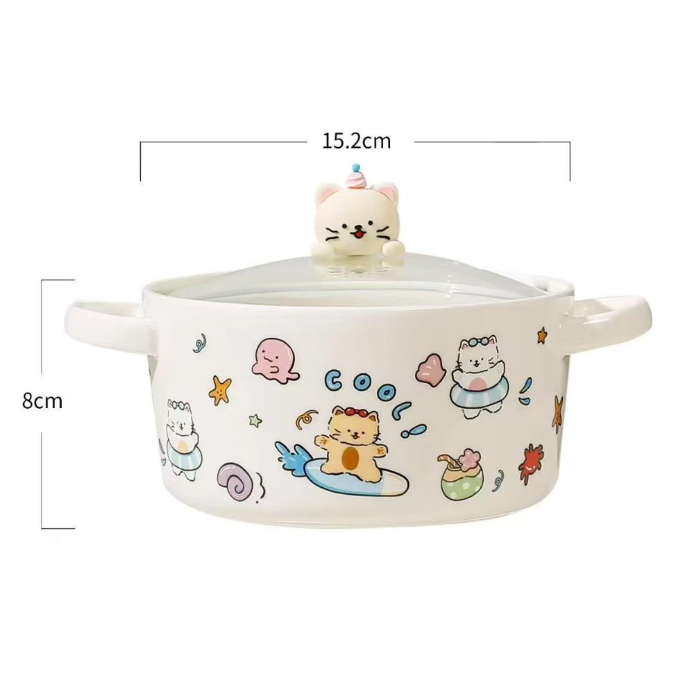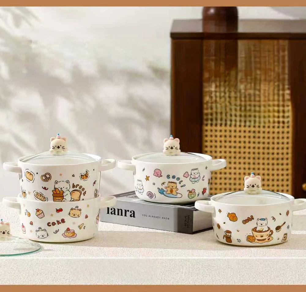 BOWL CERAMICA GRANDE CON TAPA DE VIDRIO GATOS
