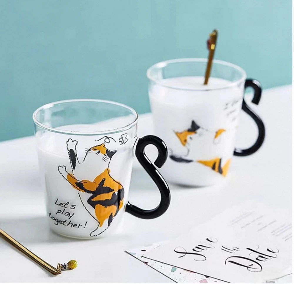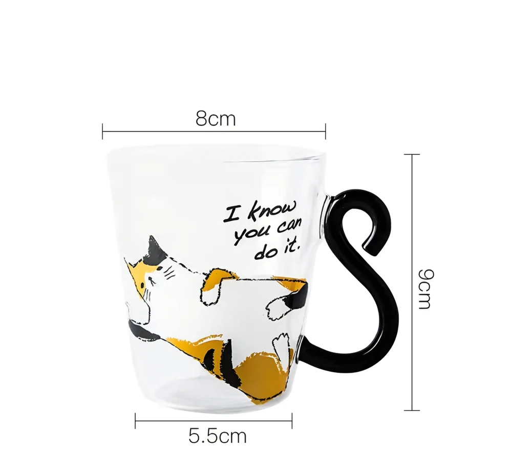 TAZA DE VIDRIO CUTE GATO