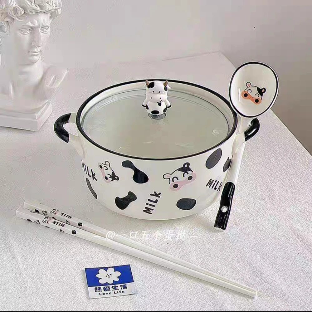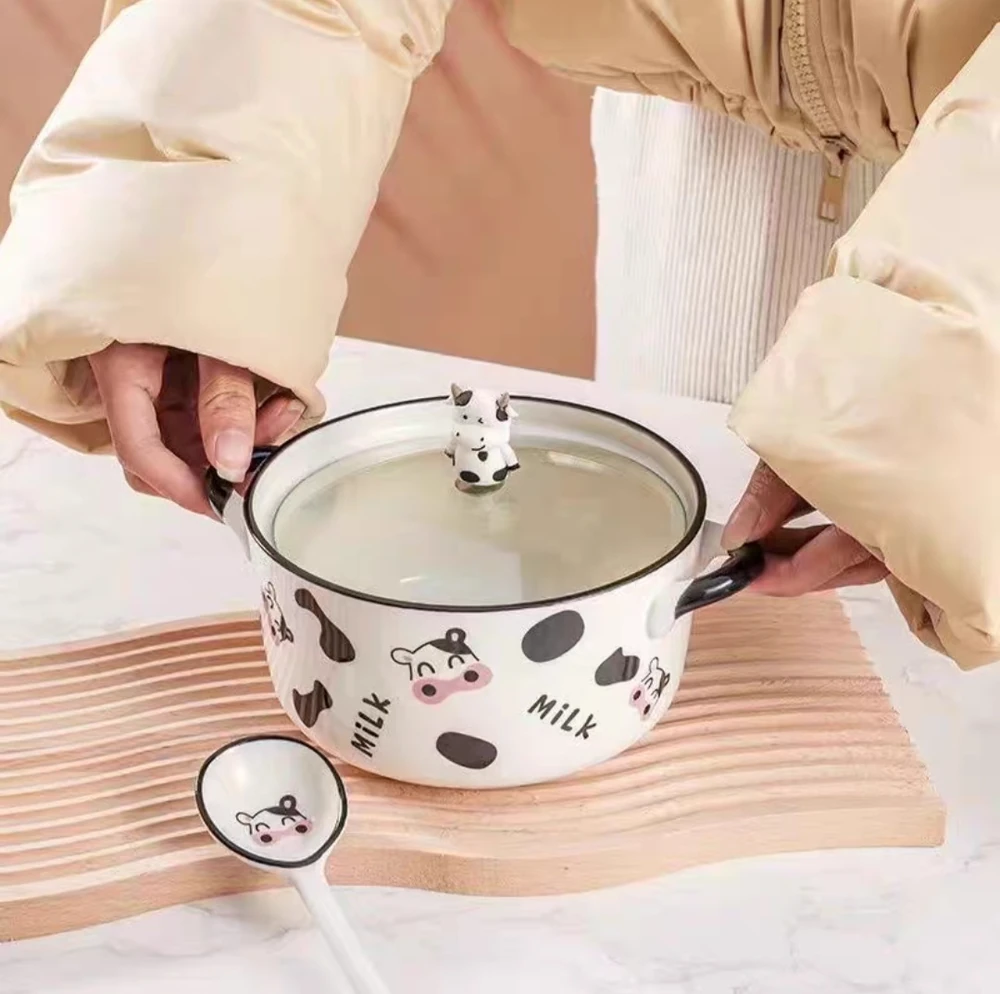 CERAMICA CON 2 ASAS Y TAPA DE VIDRIO VAQUITA FELIZ