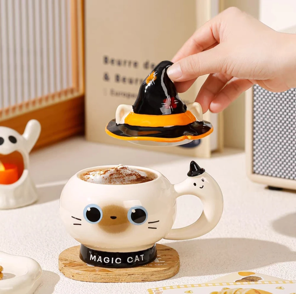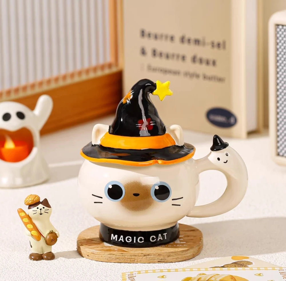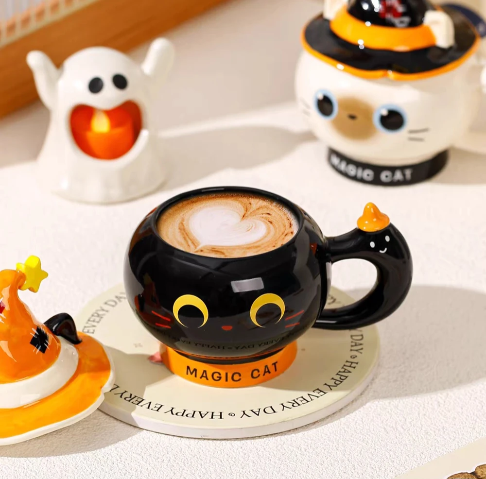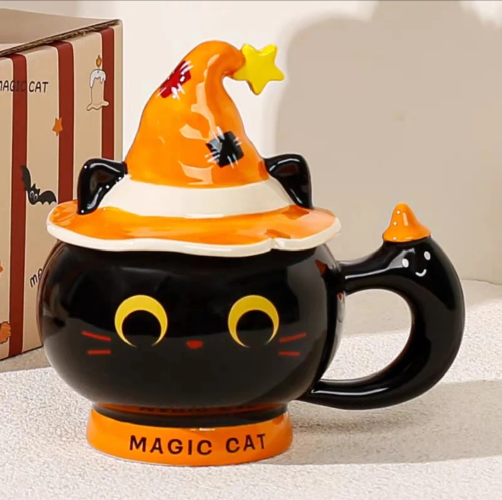 TAZA CERAMICA GATO NEGRO CON GORRO
