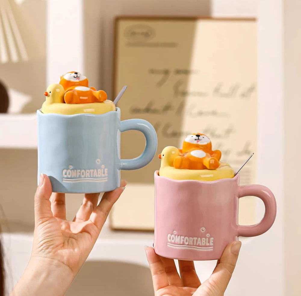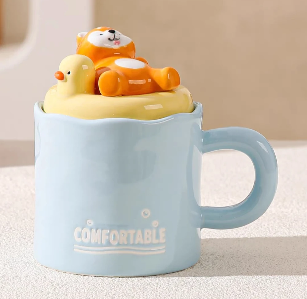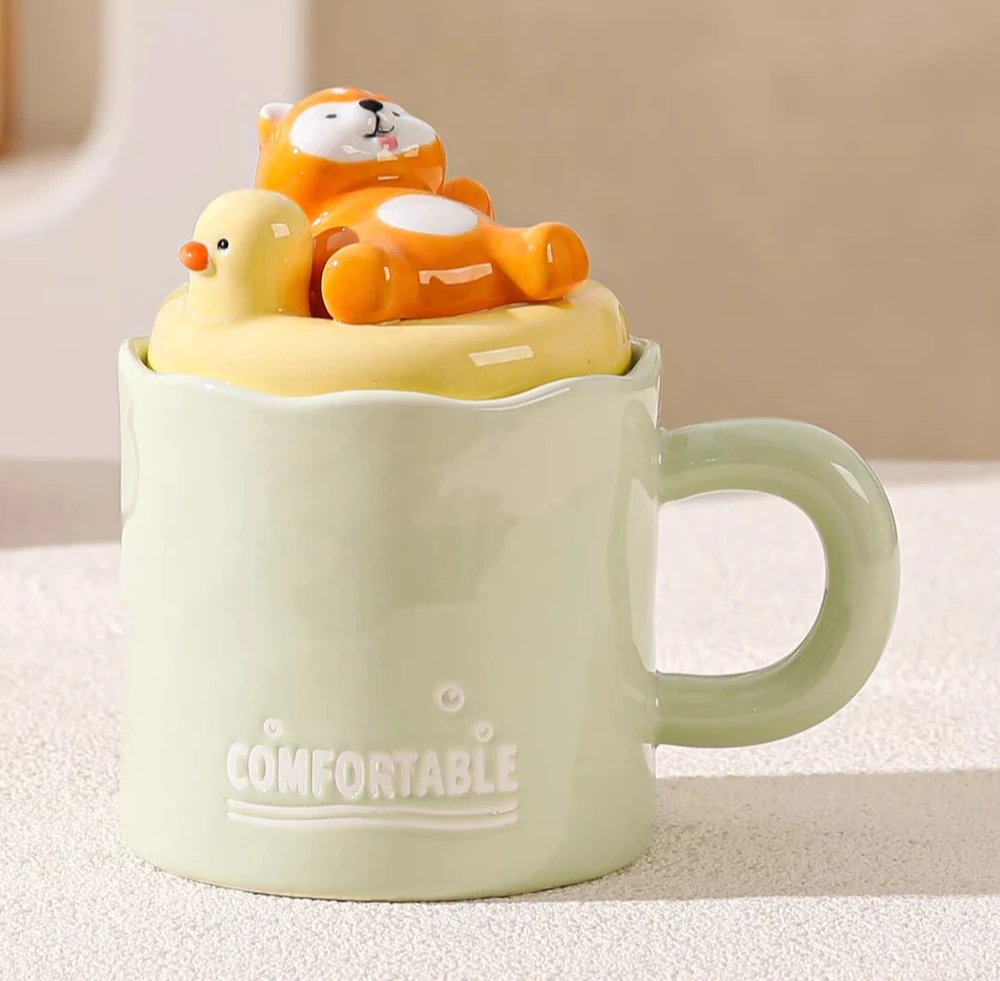 TAZA CERAMICA CON ANIMALES BAÑANDO