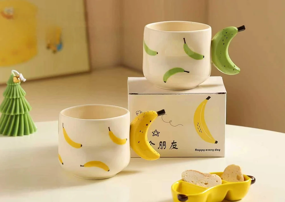 TAZA CERAMICA CON MANIJA DE BANANA