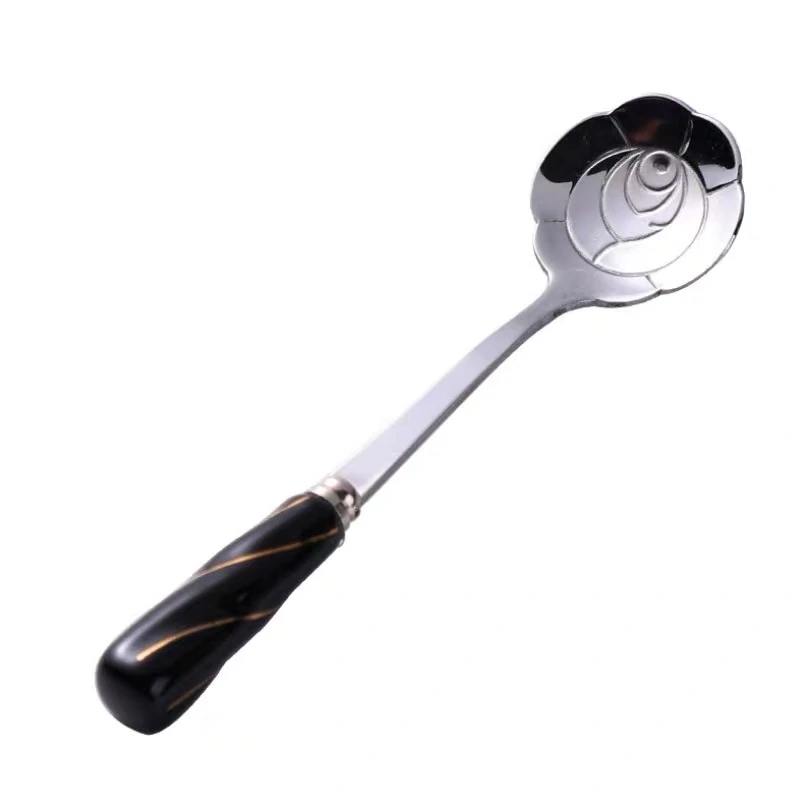CUCHARA PLATEADA DISEÑO ROSA MANGO NEGRO