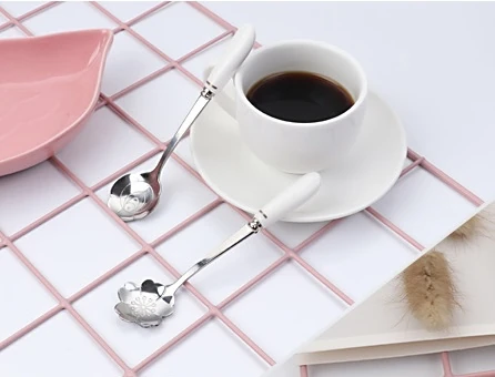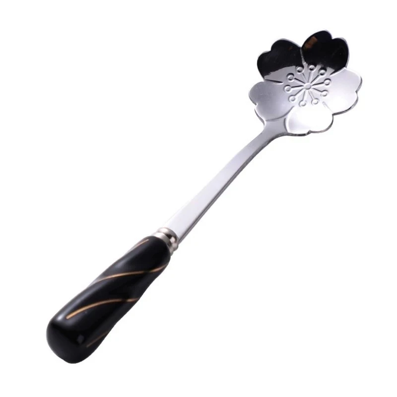 CUCHARA PLATEADA DISEÑO LOTO MANGO NEGRO