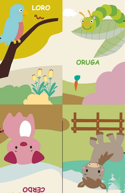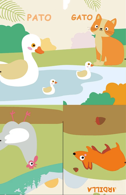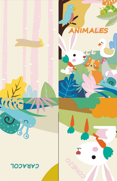 LIBRO DE TELA ANIMALES DE JARDIN CON COLAS
